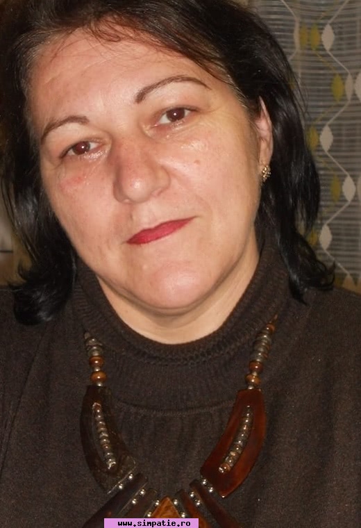 Sunt o femeie matura care a hotarit ca poate sa inceapa un nou capitol in viata ei. Simpla, modesta, buna gospodina dar care nu-si mai doreste sa se trezeasca singura dimineata I'm not perfect, as any person, but as any person I want to be happy. I have many advantages which can be attractive to those men who are looking for their soul mates. I am a real woman and I like everything that is connected with it. I know that life is hard but I always try to stay optimistic. Family is what we should live for and I am ready to do everything to complete it. I feel that I was created to keep the family fire, I want to use a chance that I will be given. I feel myself 100% ready to marry , but only if I am sure that my marriage will last forever.I am a kind, easy-going, energetic and sociable woman. But at the same time I am calm and tolerant in relations with all people. And yes, I am also a loving, passionate, caring, positive minded and optimistic person. Ca aspect, aveti poze care va pot spune cate ceva despre mine. Usor tendinta de ingrasare, dar cum se spune, mare si frumoasa Ce caut? un barbat adevarat, fara fite, care sa-si doreasca sa fie in compania unei femei, care sa incerce sa faca frumoasa si insorita ziua alaturi de o femeie
