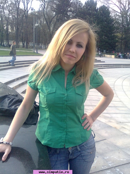 O fata simpla, cu bun simt. Intodeauna interesata sa aflu "noutatile" lumii. Sincera, urasc minciuna, destul de glumeata dar in limita bunului simt, sensibila, grozav de romantica, uneori o mica visatoare. Ador viata si tot ceea ce ma inconjoara, iubesc natura cu toate minunile ei. Naturala, cu o privire calda. 1.70 m, 58 kg, blonda, ochi verzi. Buze pline, sanii potriviti, senzuala. Intr-o continua cautare a sufletului pereche; a unui suflet cald si intelegator alaturi de care sa pot merge pe drumul vietii.
