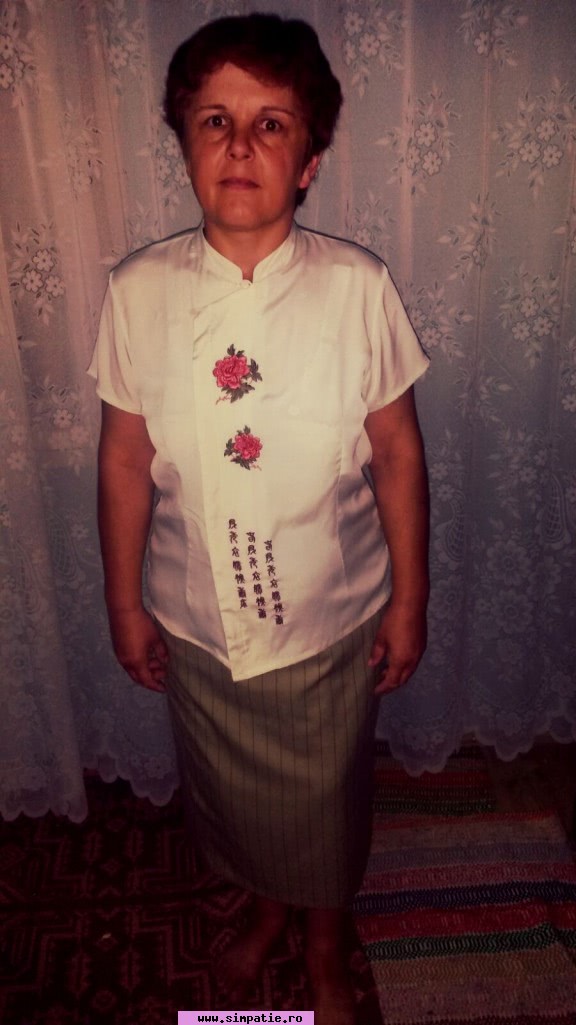 Nimic iesit din comun...o femeie simpla,draguta ,iubitoare,romantica,iubesc natura si plimbarile Soy una persona alegre, leal, me gusta compartir con mis familiares y amigos, me gusta ir de camping, el mar, amanecer bajo la luz de la luna, pescar, hacer deporte, bailar,descubrir cosas nuevas, me gusta el cine,ir al teatro soy cariñosa, me gusta el arte, visitar museos lugares historicos Caut barbati care locuiesc in Arad sau in localitatile din jurul Aradului,sa nu fumeze,sa nu bea ,sa iubesca copii,romantic,nu sant interesata de aventuri vor sa iau legatura cu oameni seriosi...