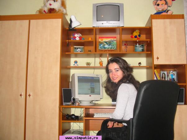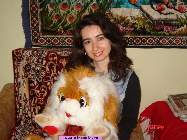 Sunt o persoana vesela, deschisa, sociabila. Imi place sa cunosc oameni, sa comunic. Alte detalii voi oferi celor care vor sa ma cunoasca, sa ma descopere...:) I am here for the right purpose; to meet a serious man; to have a relationship and to live happily. I am an open girl, very friendly and faithful! By the way I cook very well and I need somebody deosebit to test my dishes! Las la aprecierea altora. Caut persoane serioase, comunicative, pnetru al lega relatii de prietenie.....sau...cine stie....